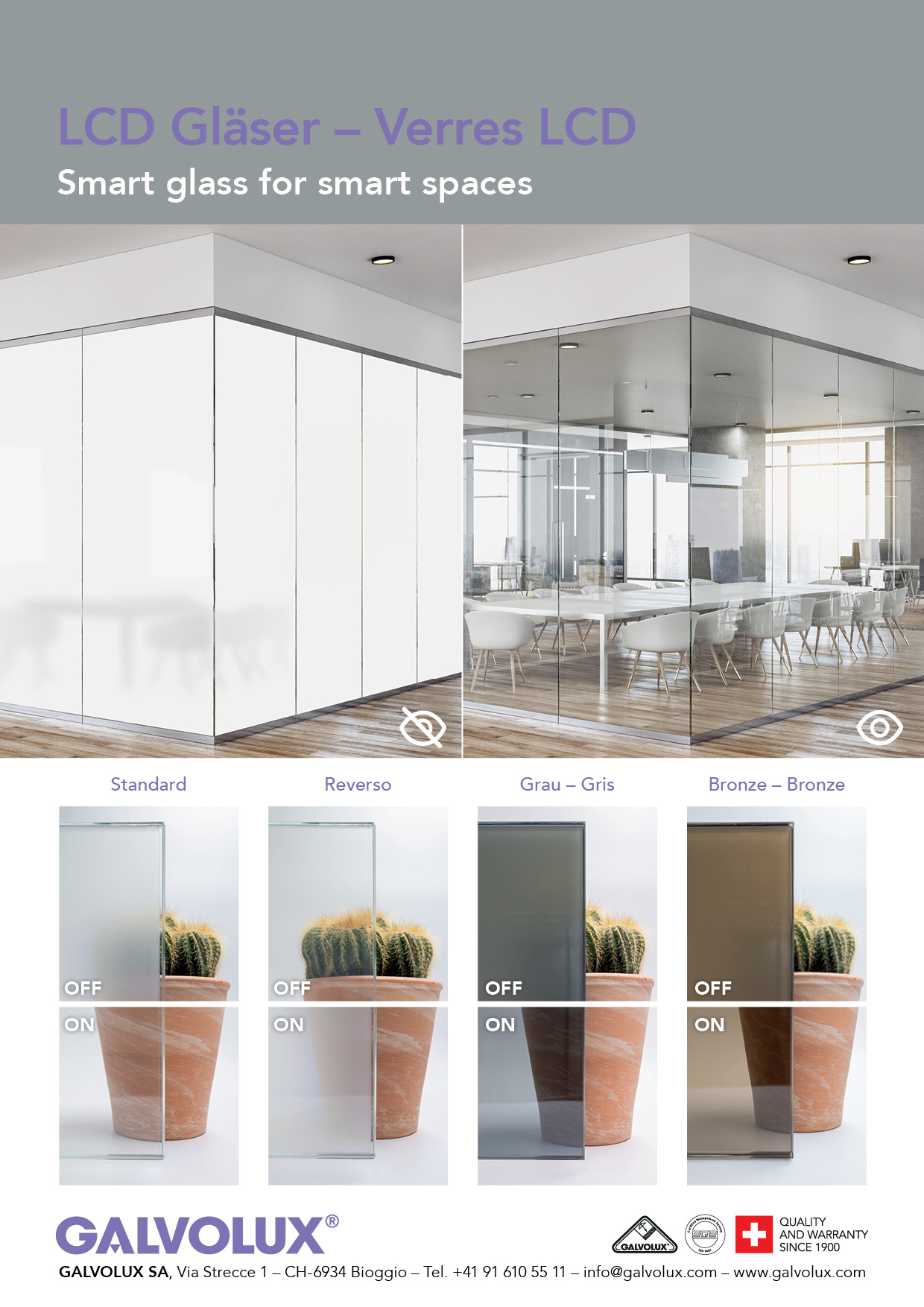 Nos verres LCD opacifiants sont personnalisables en fonction des exigences du projet.