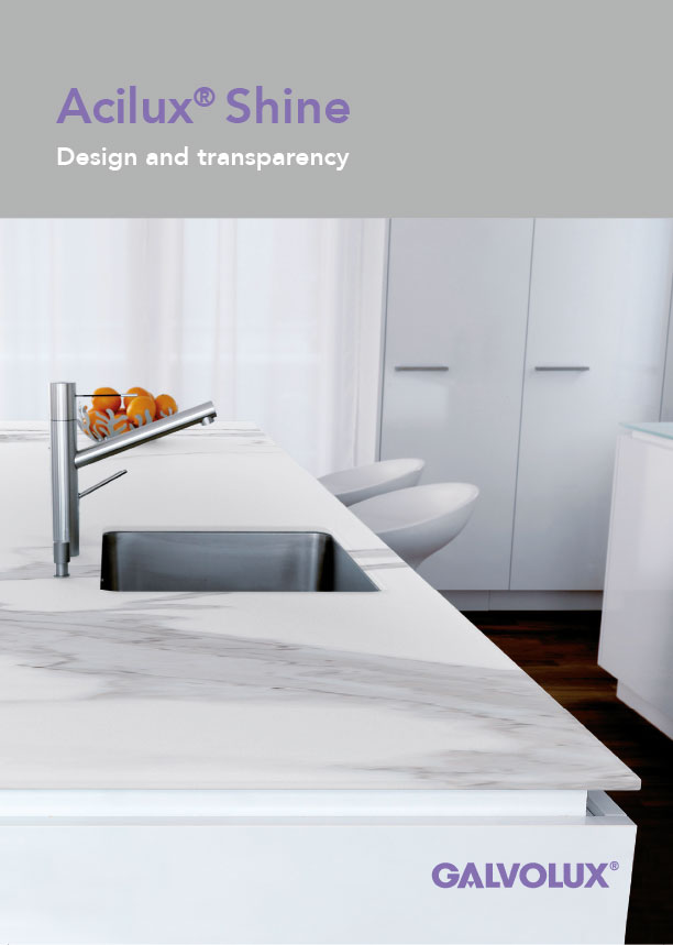 La finition semi-brillante d'Acilux® Shine vient s'ajouter à la gamme des verres pour plan de travail et crédences Acilux® et Acilux® no-scratch. En outre, elle est particulièrement adaptée aux personnalisations Galvodeco® et aux couleurs vives.